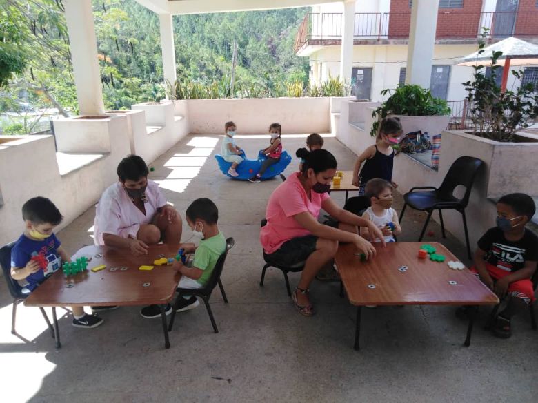 La institución en un escenario atípico desarrolla el proceso docente educativo, con menor matrícula que en tiempos normales, pero les brindamos actividades a los niños para que superen las etapas del desarrollo.